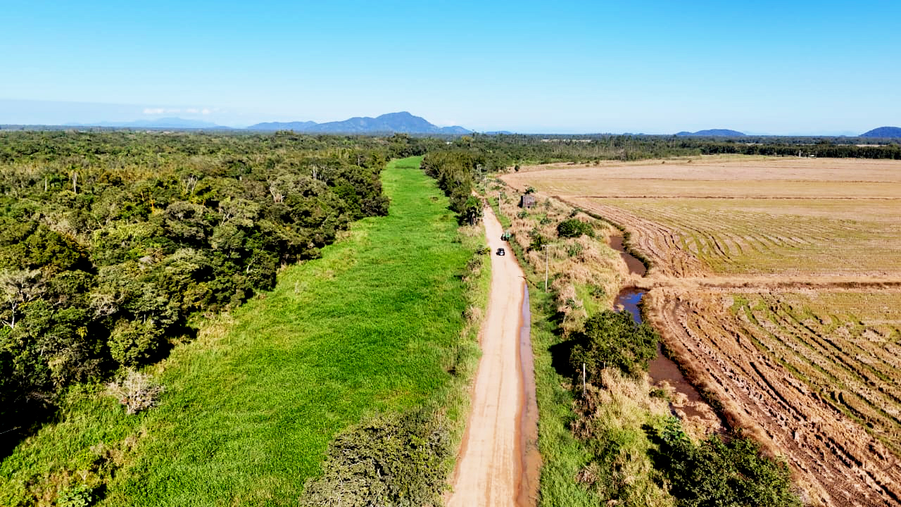 Estrategicamente posicionada no coração do estuário. Propriedade dos sócios, com infraestrutura pronta para iniciar operação imediata. O Rio Pindú atravessa a fazenda com 3.100 metros de extensão, 100% coberto de macrófitas, mata e lodo no fundo — já incluído nas licenças dos 28 km para limpeza.